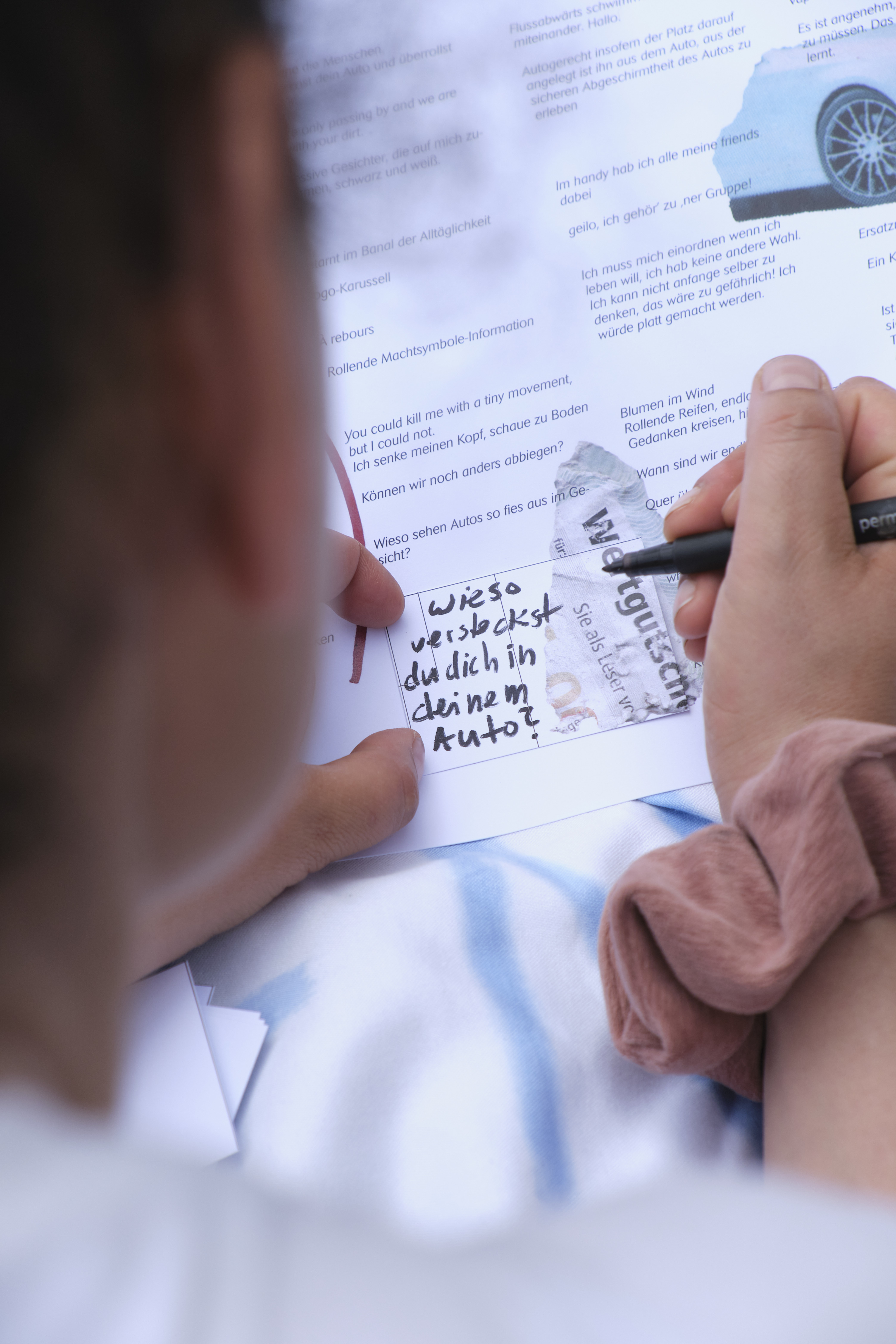Ernst Reuter Platz in Berlin is a prime example for the “automotive city”. The title of the project is derived from the description of the place on Google Maps: “Lawn and fountain in the centre of a roundabout”. This space, designed for cars, not pedestrians, becomes the setting for an exploration. Through the act of walking in circles and observing the space, we created collective poems that reflect the divide between those who are motorized and those who are not. The project process unfolds in several iterations: